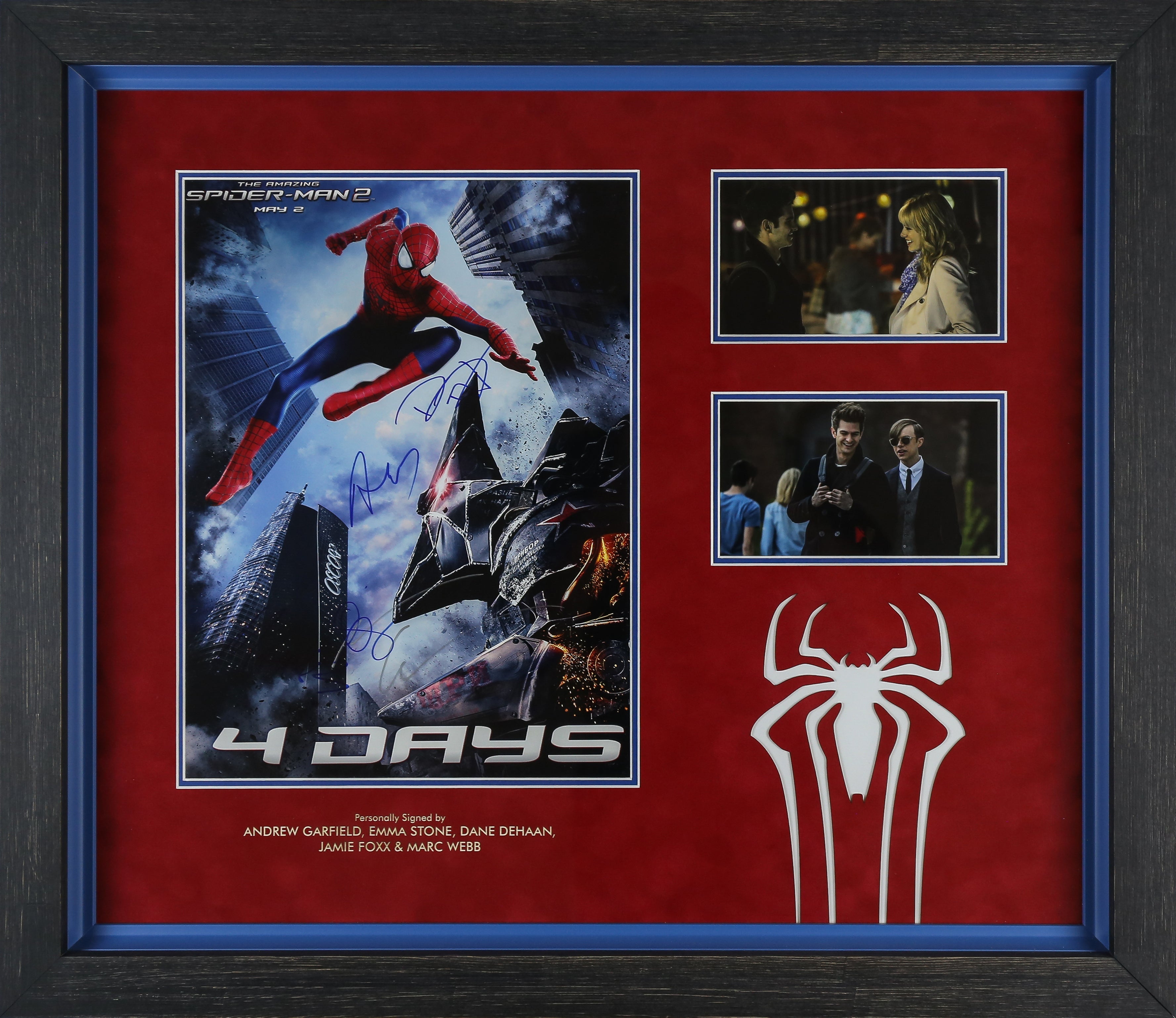 £899.00 GBP£899.00 GBP/This fantastic Photograph display was hand-signed during a professional closed signing session by Andrew Garfield, Emma Stone, Dane Dehaan, janie Foxx, Marc Webb. Framed by our...