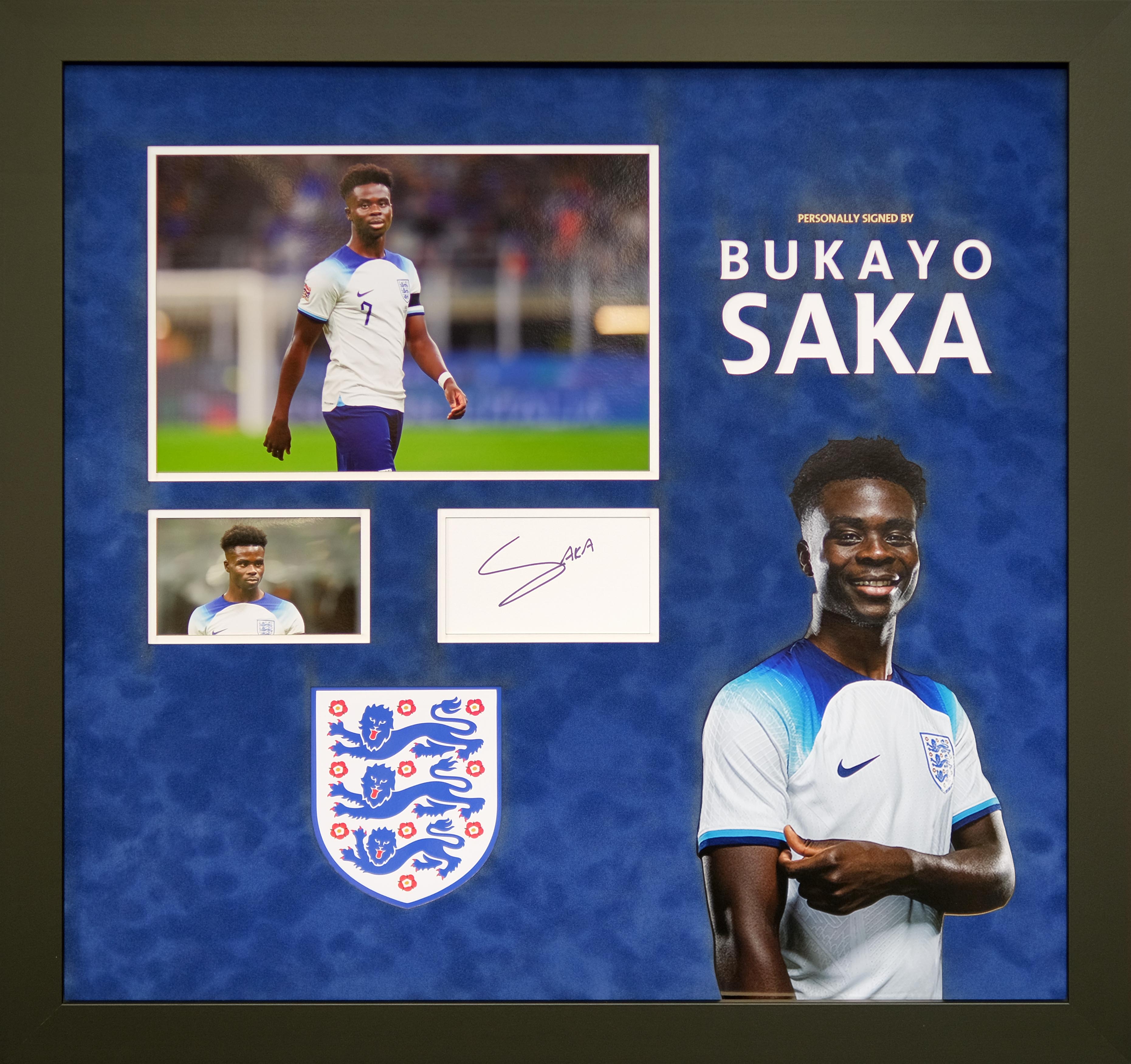 £299.00 GBP£299.00 GBP/This stunning display showcases a photograph hand-signed by Bukayo Saka, one of Arsenal FC’s standout talents. Expertly framed by our in-house team, who bring over four...