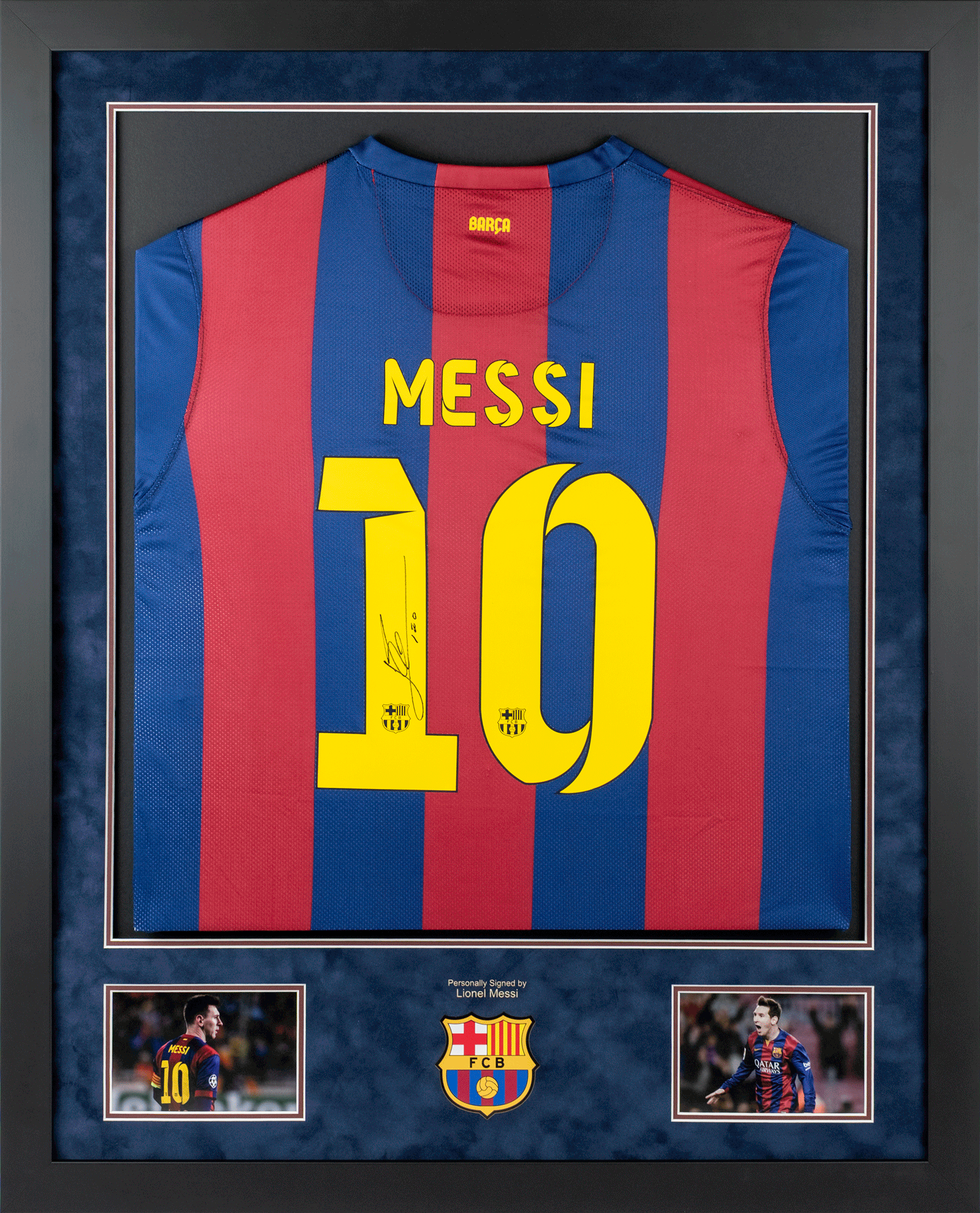 £1,699.00 GBP£1,699.00 GBP/This fantastic Shirt display was hand-signed by Lionel Messi. Framed by our in house framing team, with over 4 decades of experience between them. The Shirt sits in a 40mm sleek black...