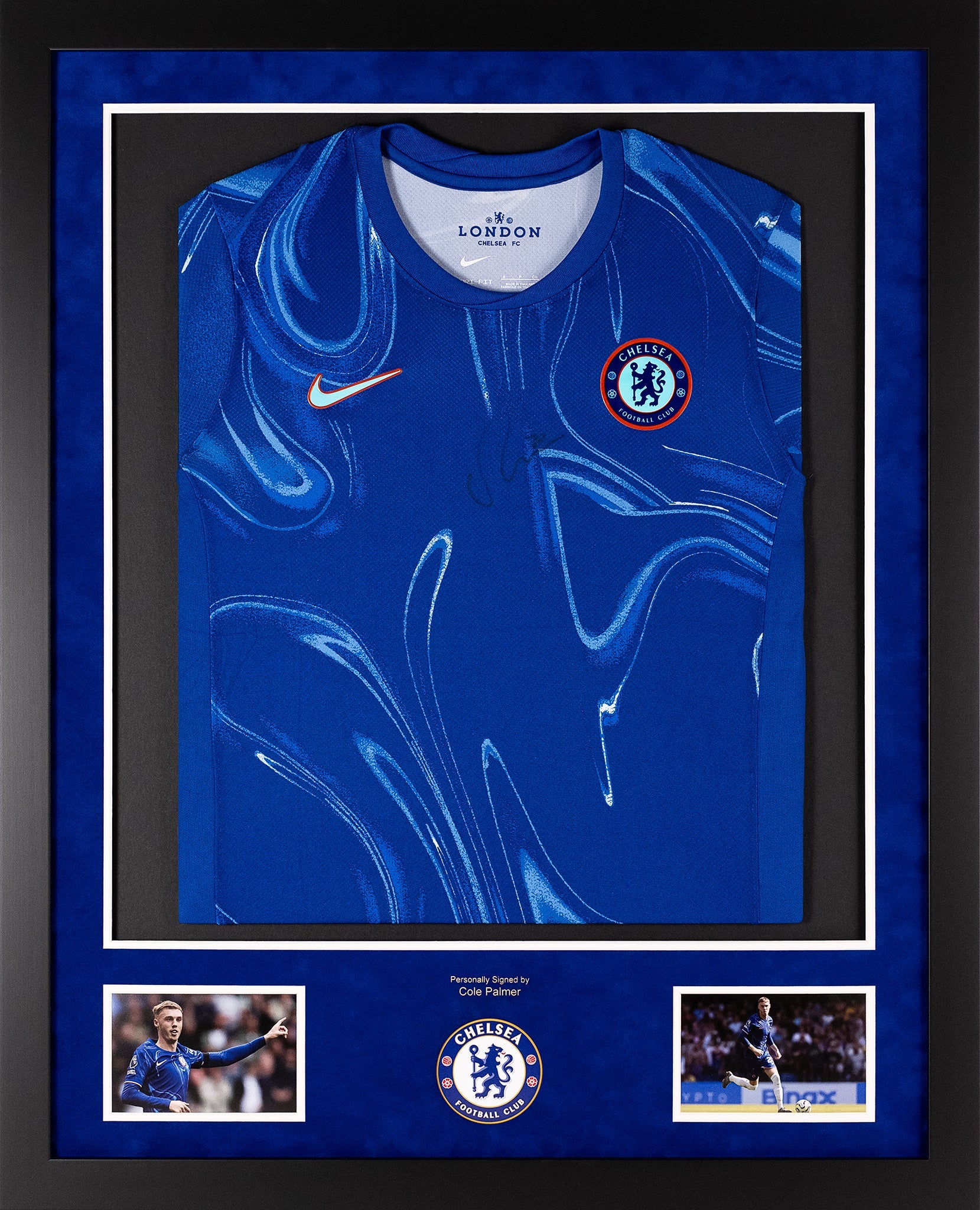 £499.00 GBP£499.00 GBP/This outstanding shirt display, hand-signed by Chelsea and England’s rising star Cole Palmer, is a truly special piece of football memorabilia that every fan or collector...