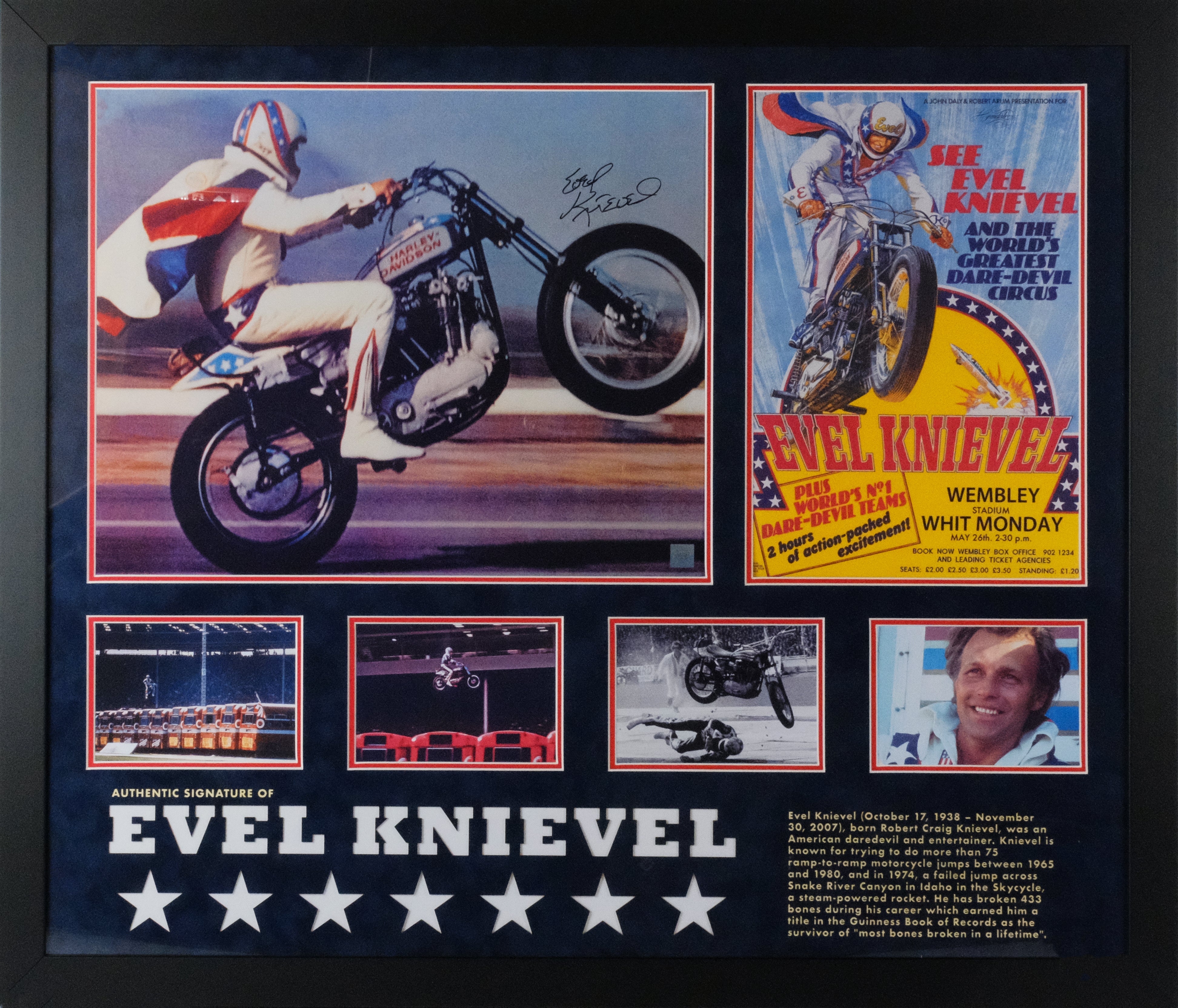 £699.00 GBP£699.00 GBP/This superb photograph was personally signed by the legend Evel Knievel. The signature was obtained by one of our most trusted partners. The product comes with...