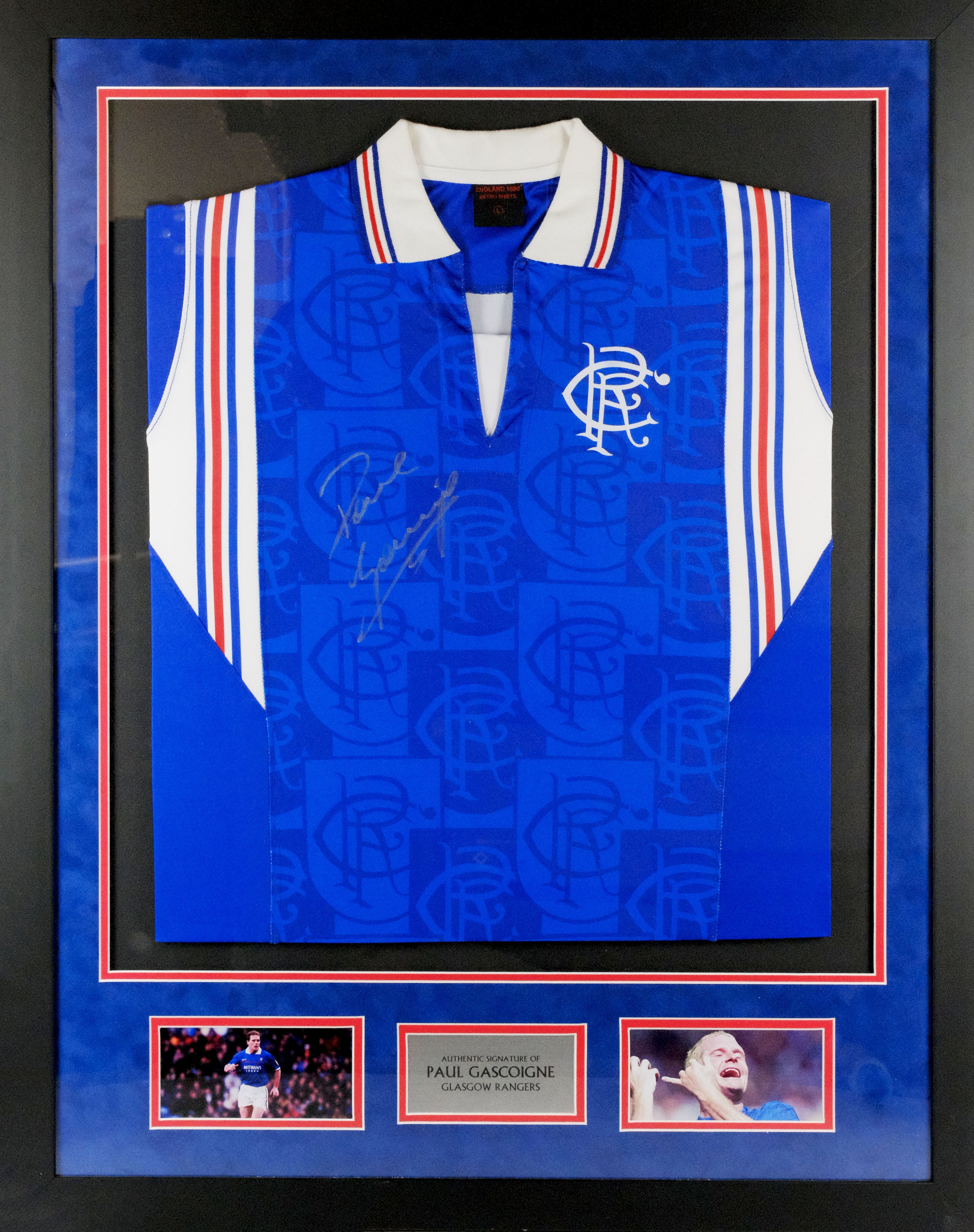 £299.00 GBP£299.00 GBP/This fantastic Shirt display was hand-signed by Paul Gascoigne. Framed by our in house framing team, with over 4 decades of experience between them. The Shirt sits in a 40mm sleek black frame,...