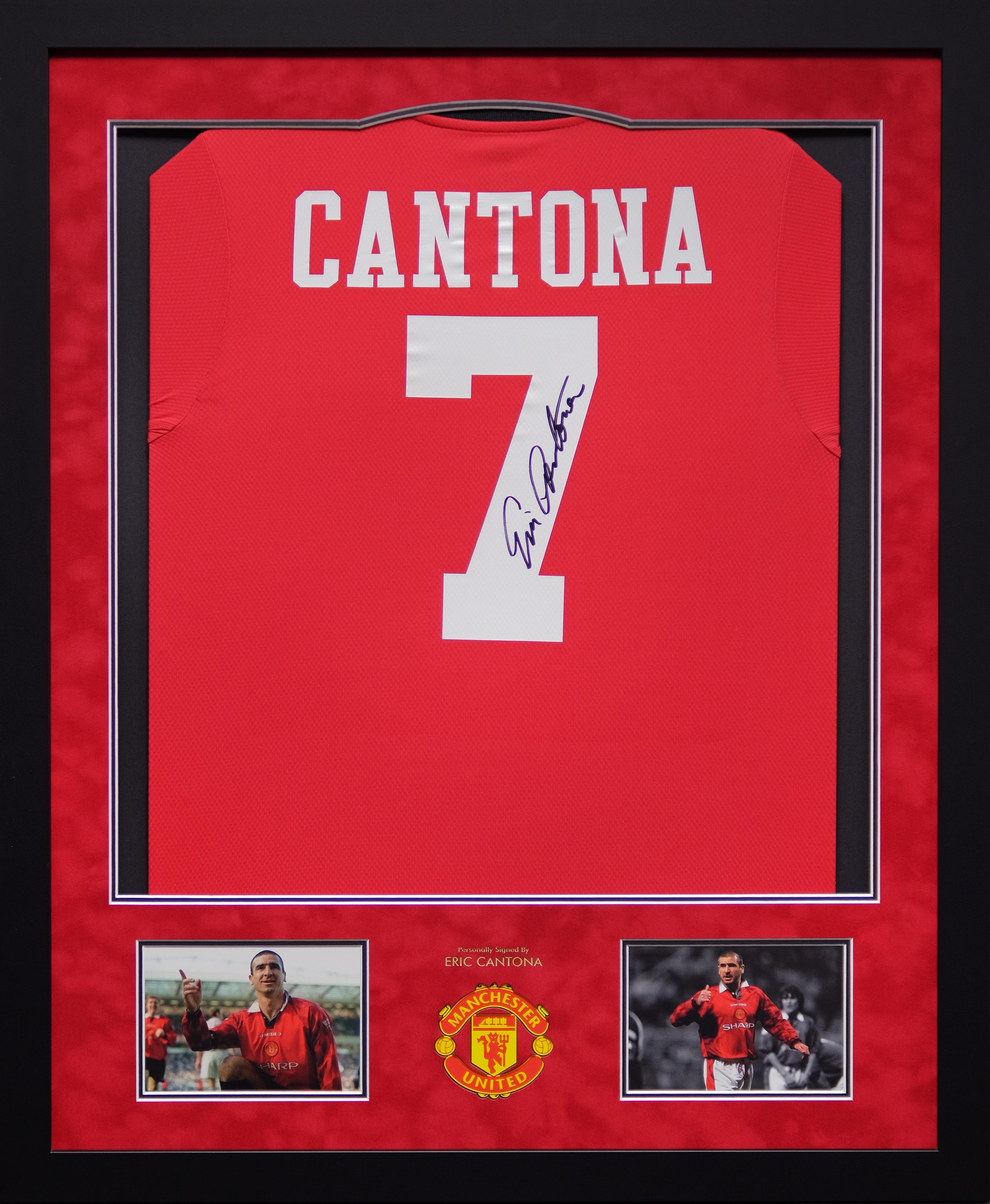 Only 1 leftCantona man united signed shirt framed display£499.00 GBP£499.00 GBP/This fantastic Shirt display was hand-signed by Cantona. Framed by our in house framing team, with over 4 decades of experience between them. The Shirt sits in a 40mm sleek black frame, duel...