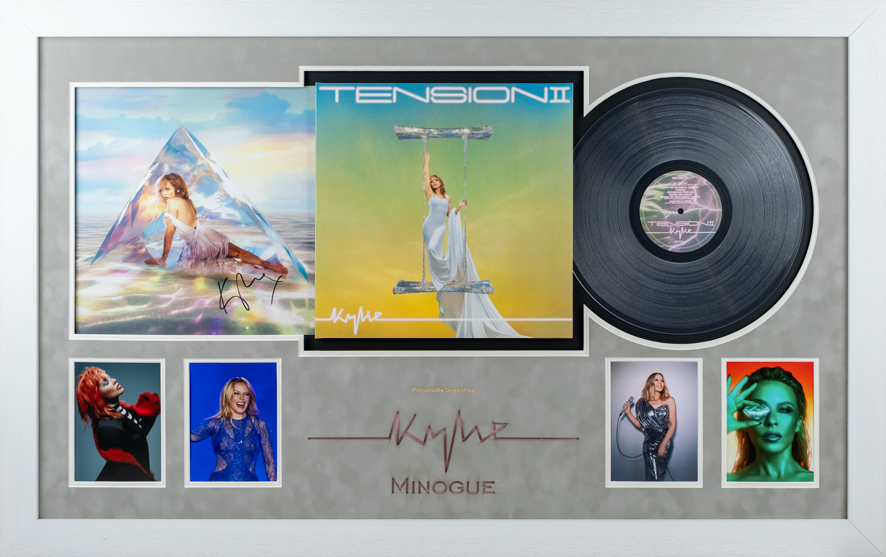 £699.00 GBP£699.00 GBP/Fully Signed Kylie Minogue ‘Tension 2’ Vinyl Display. Framed in Our Most Luxurious Finish, Hand-Signed by the Icon Celebrate the pop brilliance of Kylie Minogue with...
