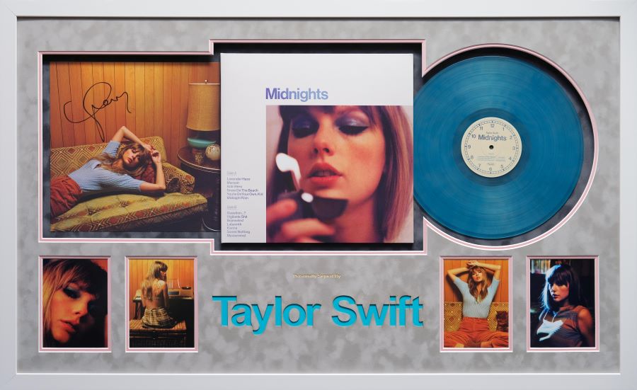 £899.00 GBP£899.00 GBP/We are delighted to have for sale some rare Signed Taylor Swift Midnights Moonstone Blue Signed Album Display. This fantastic Vinyl display is beautifully framed in a white...