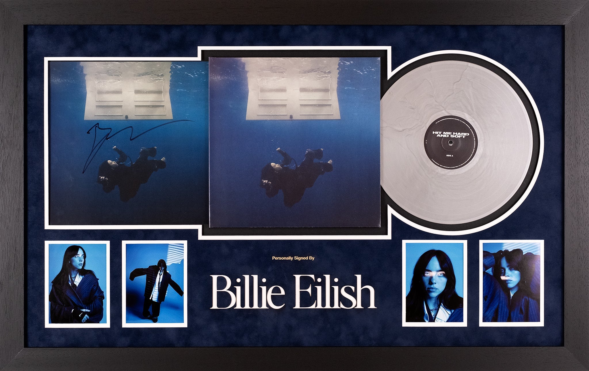 Billie eilish signed hit me hard and soft exclusive grey lp insert framed display