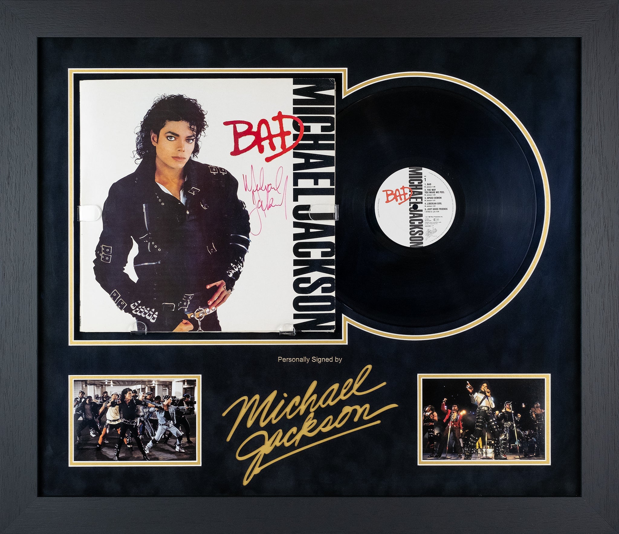 Michael jackson signed 'bad' vinyl display