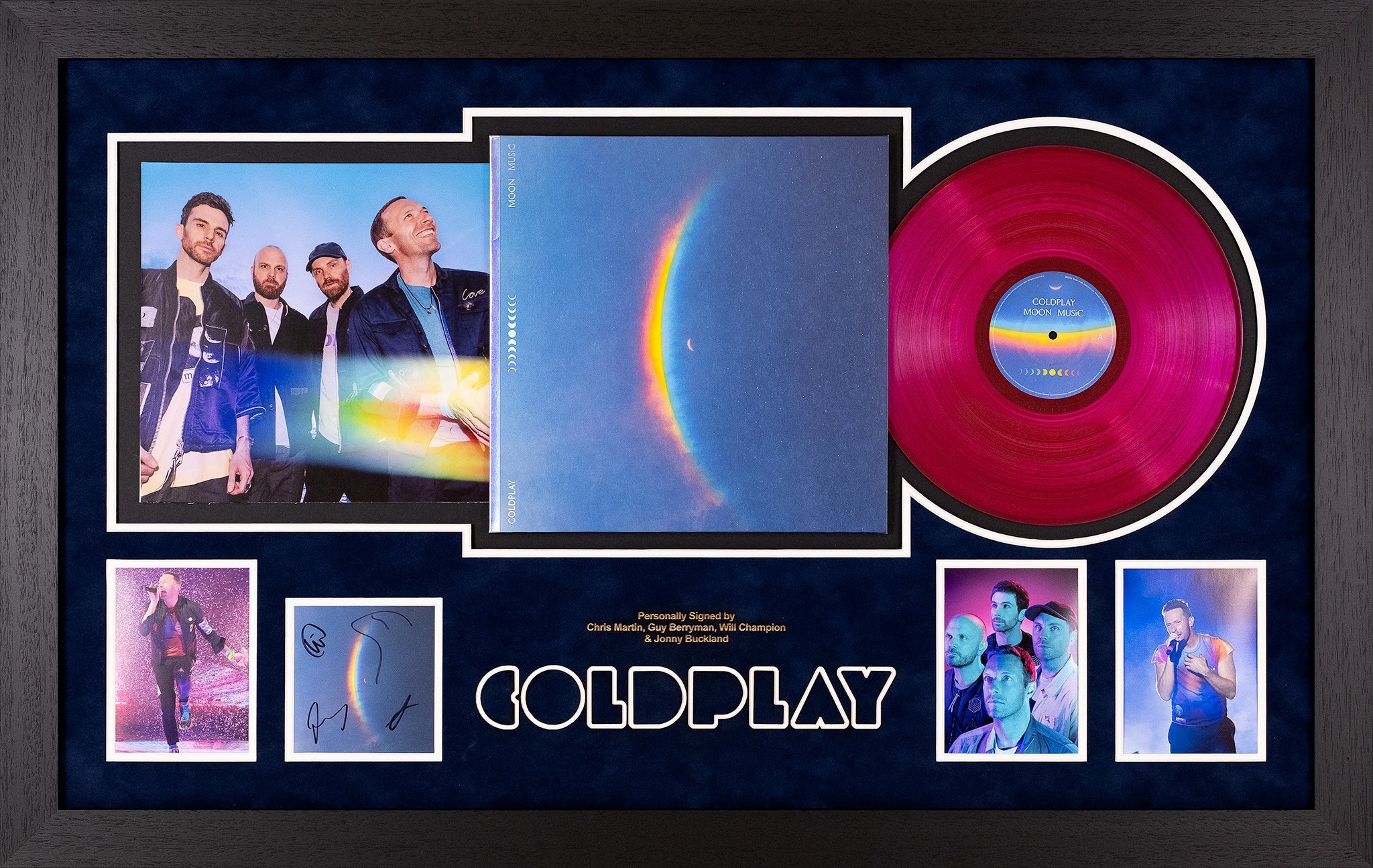 £699.00 GBP£699.00 GBP/This Fully Signed Coldplay ‘Moon Music’ vinyl display, framed in our most luxurious frame, hand signed by Coldplay. Celebrate the legendary band Coldplay with this exclusive...