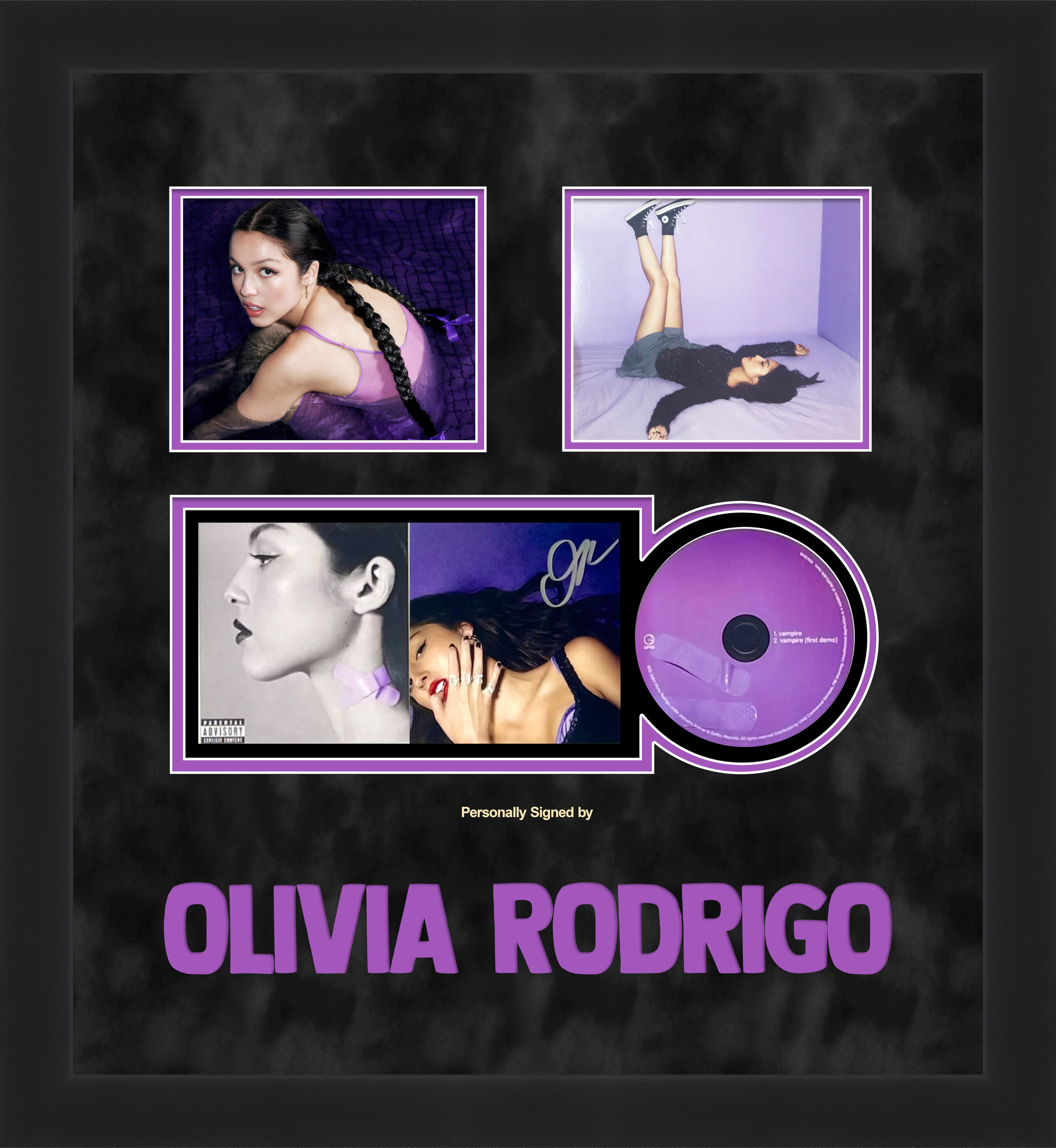 Olivia rodrigo signed 'guts' cd insert framed display
