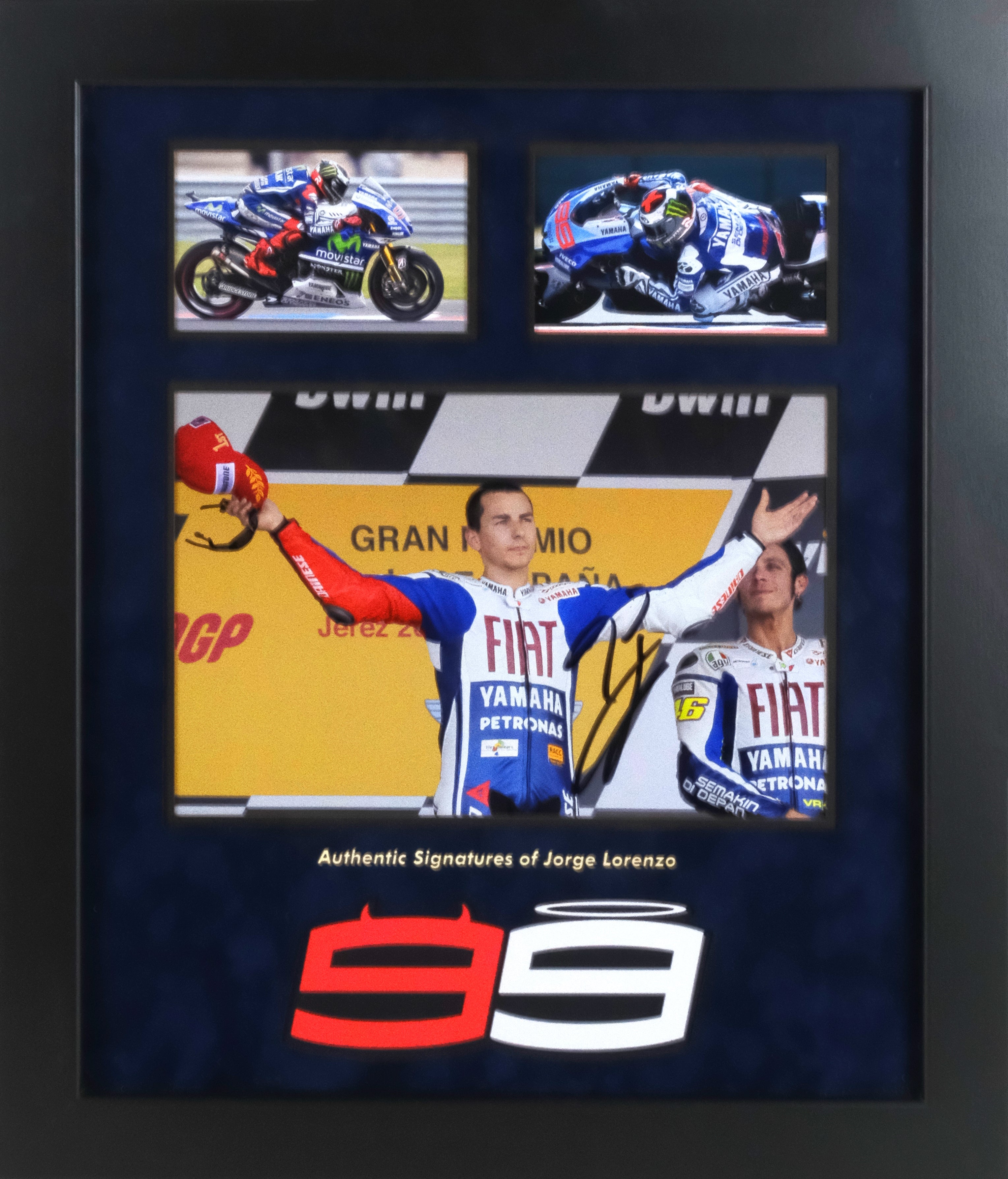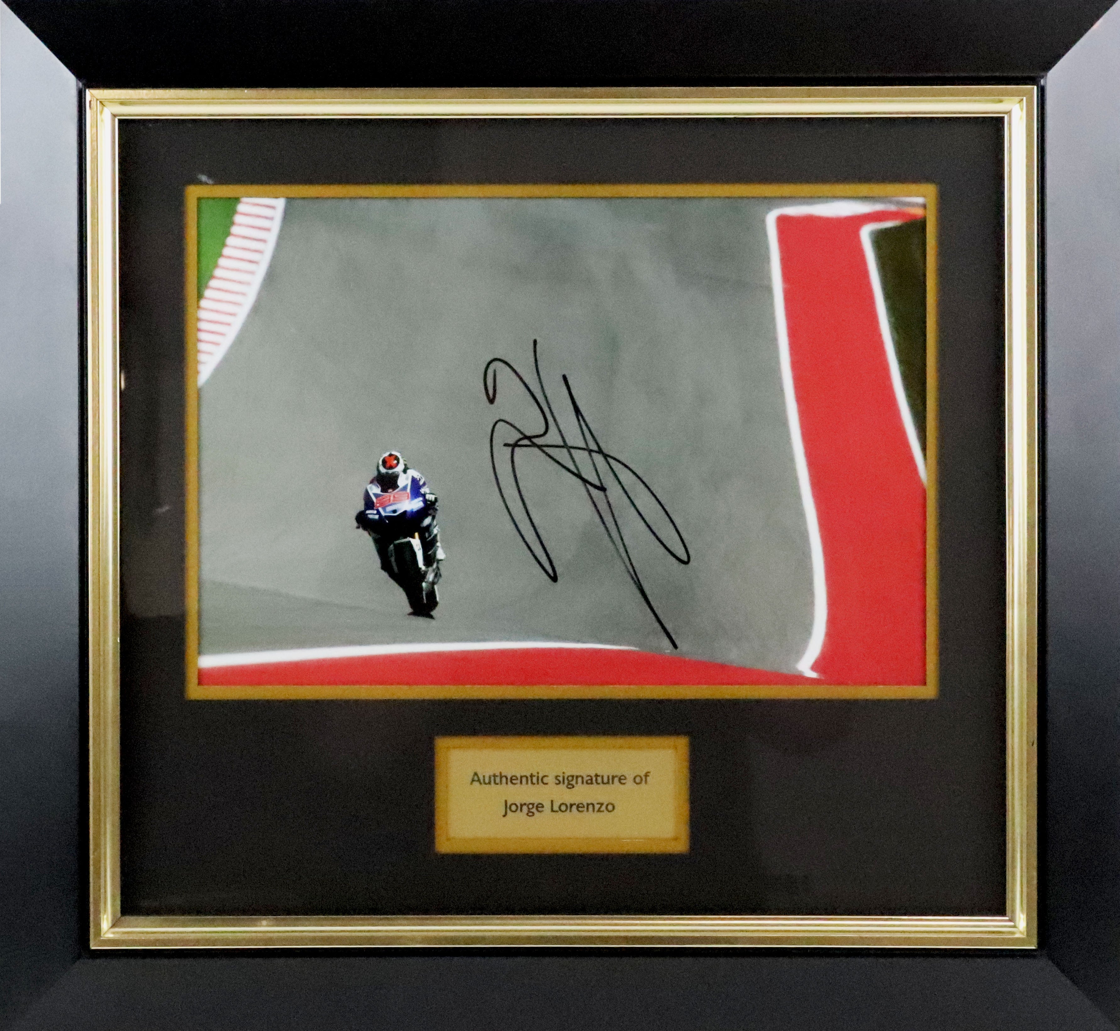 £199.00 GBP£199.00 GBP £149.00 GBP/This fantastic photograph display was hand-signed by Jorge Lorenzo Framed by our in house framing team, with over 4 decades of experience between them. The white card sits...