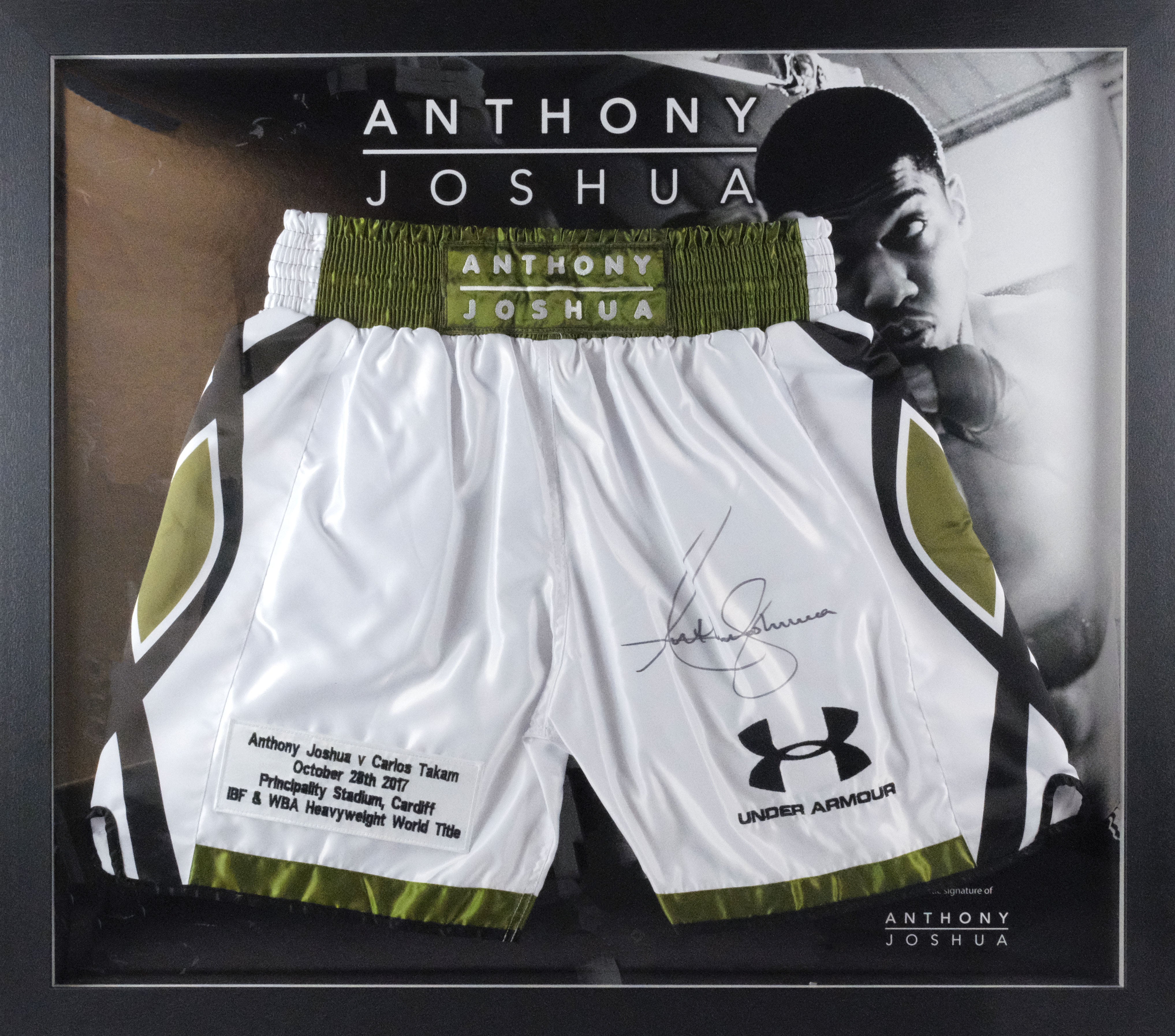 £599.00 GBP£599.00 GBP/This fantastic Shorts display was hand-signed by Anthony Joshua. Framed by our in house framing team, with over 4 decades of experience between them. The shorts sits in...