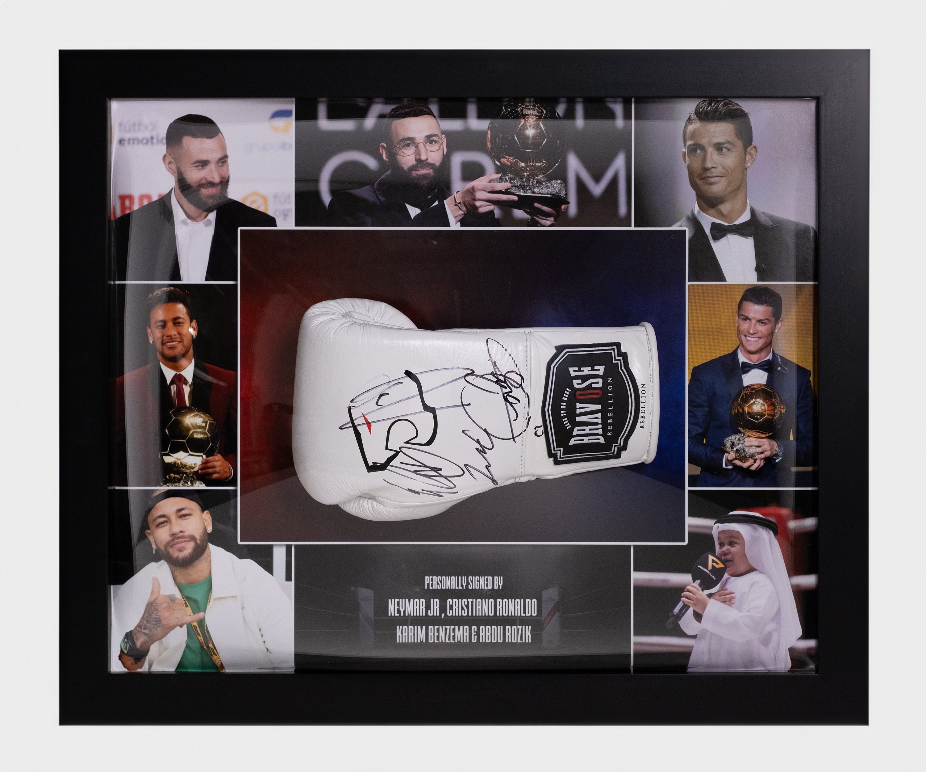 Neymar jr, ronaldo, benzema, rozik signed glove display