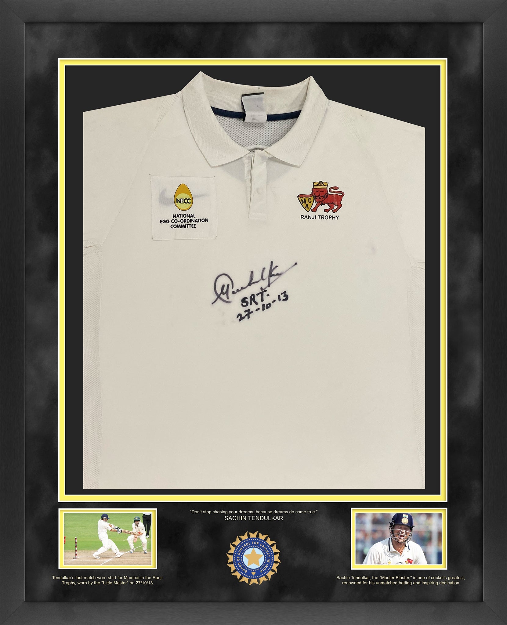 Sachin tendulkar signed match-worn shirt display
