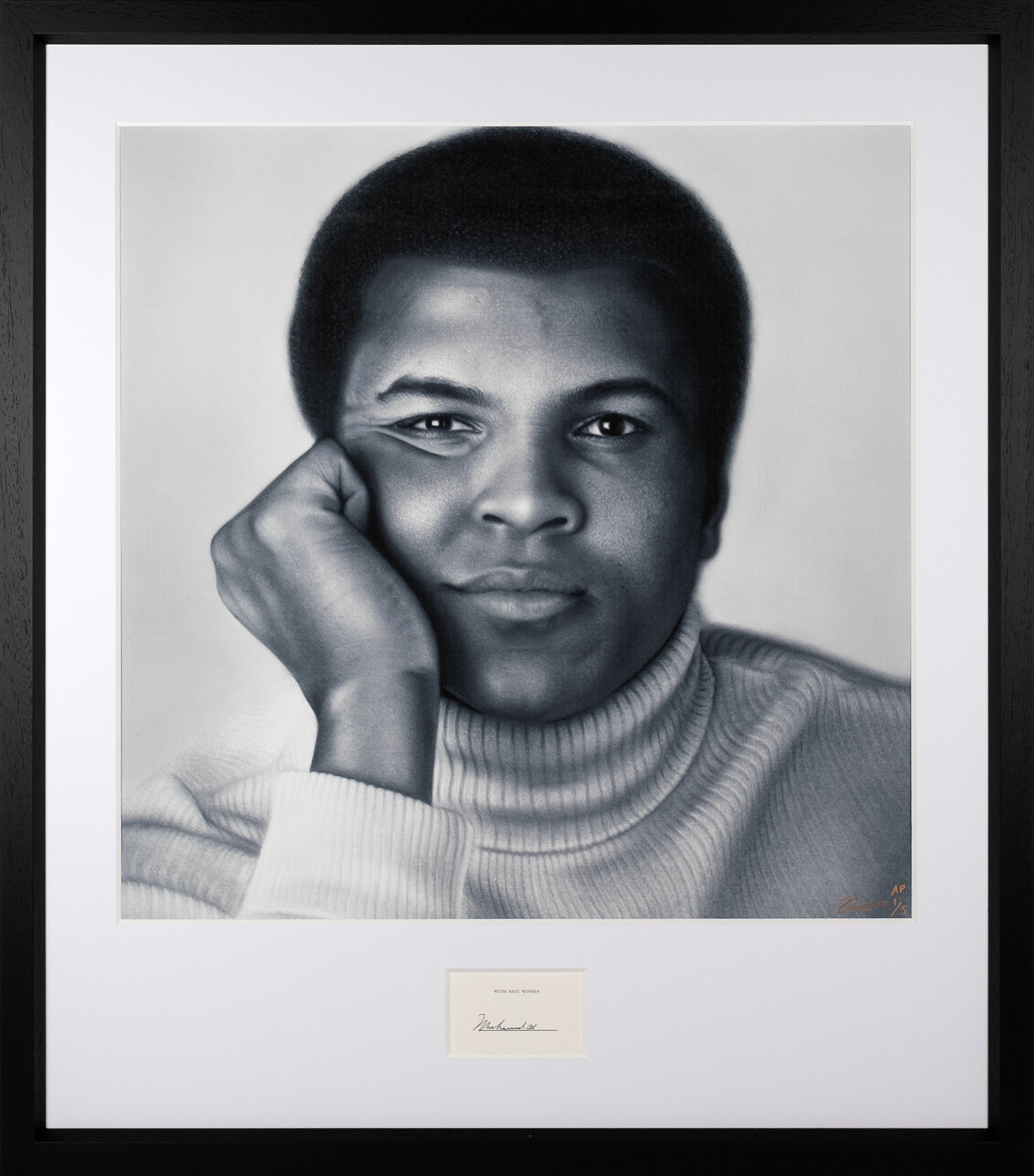 Signed muhammad ali charcoal and graphite art print
