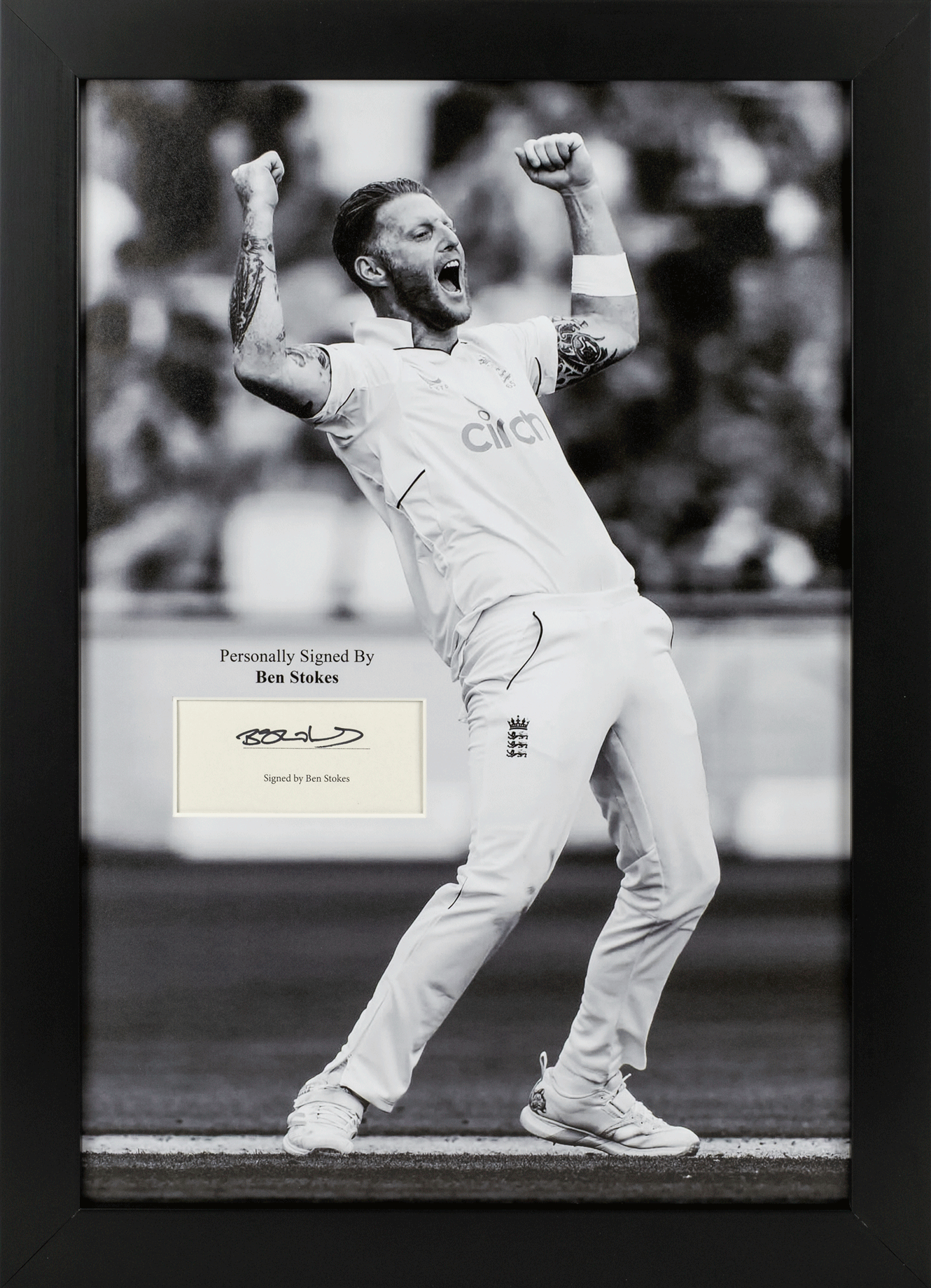 £299.00 GBP£299.00 GBP/Elevate your sports memorabilia collection with this stunning, framed, hand-signed 12x8” photograph of Ben Stokes. This premium display features a contemporary double mount design, showcasing additional...