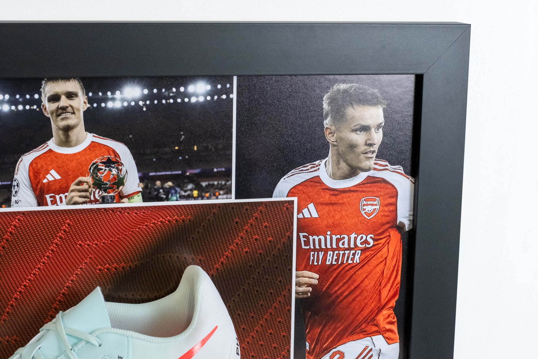 Own a piece of Arsenal history with this stunning signed boot display featuring Martin Ødegaard. This exceptional display showcases a boot personally signed by the talented Norwegian midfielder.
